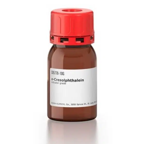 او-کروزول فتالئین (o-Cresolphthalein) یک ترکیب شیمیایی مهم و شناخته شده در زمینه آنالیزهای آزمایشگاهی و شیمیایی است که بهصورت پودر با کیفیت Indicator Grade توسط شرکت معتبر Sigma-Aldrich (Merck) تحت کد C85778 عرضه میشود. این ماده به دلیل ویژگیهای خاص ساختاری و نوری خود، کاربردهای متنوع و گستردهای در صنایع دارویی، آزمایشگاهی و تحقیقاتی دارد.