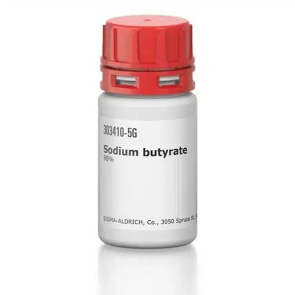 سدیم بوتیرات (Sodium butyrate) نمک سدیمی اسید بوتیریک است که با فرمول شیمیایی C₄H₇NaO₂ و وزن مولکولی 110.09 g/mol، بهصورت پودری سفید رنگ و محلول در آب عرضه میشود. این ترکیب از برند معتبر Sigma-Aldrich با کد 303410 و خلوص ≥98% تولید شده و بهعنوان یک ماده کلیدی در مطالعات سلولی، اپیژنتیک، ایمنیشناسی و سنتزهای شیمیایی شناخته میشود.