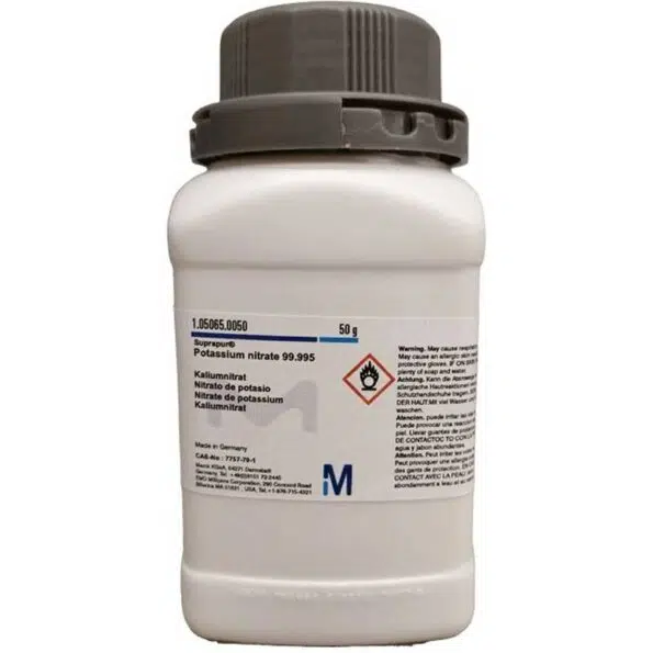 پتاسیم نیترات (Potassium Nitrate) یک ترکیب معدنی مهم و شناختهشده است که به صورت پودر یا کریستال سفید عرضه میشود. این ماده یک اکسیدکننده قوی بوده و در صنایع مختلف از جمله کشاورزی، تولید شیشه، صنایع غذایی، سنتز مواد شیمیایی و آزمایشگاههای تحقیقاتی کاربردهای گسترده دارد.