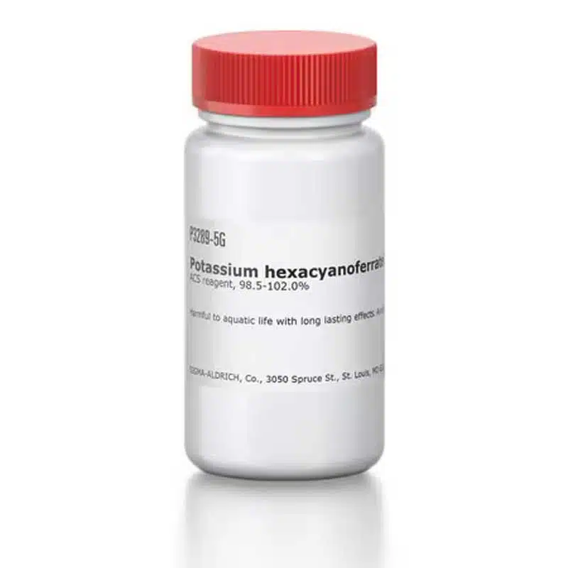 پتاسیم هگزا سیانو فرات(II) تری هیدرات با فرمول شیمیایی K₄[Fe(CN)₆]·3H₂O و کد محصول P3289، ترکیبی غیرآلی کریستالی زرد رنگ است که با گرید ACS و خلوص 98.5٪ تا 102٪ توسط شرکت معتبر Sigma-Aldrich عرضه میشود. این ماده یک معرف تحلیلی بسیار مهم در شیمی تجزیه و صنایع شیمیایی بوده و در آزمایشهای الکتروشیمی، تشخیص فلزات سنگین، رنگسنجی و سنتز نانومواد کاربرد گسترده دارد.