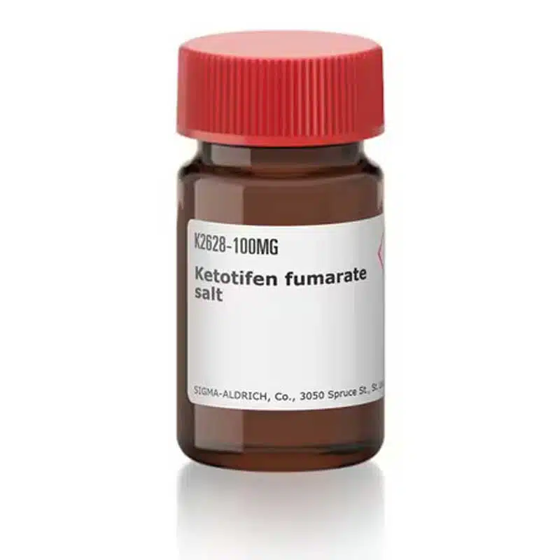 کتوتیفن فومارات سالت (Ketotifen fumarate salt) با کد K2628 از Sigma-Aldrich، یک ترکیب شیمیایی با خواص آنتیهیستامینی قوی است که بهطور گسترده در تحقیقات دارویی، بیوشیمیایی و درمان آلرژیها مورد استفاده قرار میگیرد. این محصول بهطور خاص برای آزمایشهای علمی، تحقیقات دارویی و فرمولاسیون داروهای ضدآلرژی طراحی شده است. کتوتیفن فومارات بهعنوان یک آنتاگونیست هیستامین با قابلیت مهار حساسیتهای آلرژیک و آسم شناخته میشود.