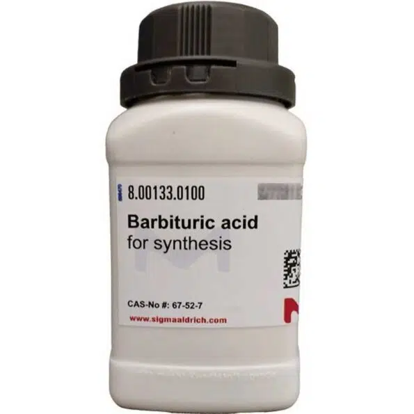باربیتوریک اسید (Barbituric Acid) یک ترکیب آلی حلقوی با ساختار پیریمیدین-دیون است که به عنوان پیشماده اصلی بسیاری از داروها و ترکیبات بیولوژیک مورد استفاده قرار میگیرد. این ماده بهصورت پودر سفید و پایدار عرضه شده و در آب و اتانول محلولیت محدودی دارد.