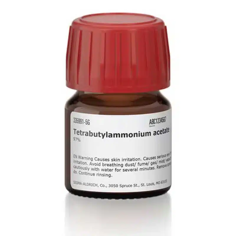 تترا بوتیل آمونیوم استات (Tetrabutylammonium acetate)، یک ترکیب آلی با ساختار یونی از خانواده نمکهای آمونیومی است که بهطور گسترده در شیمی آلی، سنتز ترکیبات پیشرفته و انتقال فاز کاربرد دارد. این ترکیب به شکل پودری یا کریستالی عرضه میشود و دارای حلالپذیری عالی در بسیاری از حلالهای آلی است. کد 335991 این ماده، تضمینکننده اصالت و کیفیت بالای آن از برند سیگما آلدریچ است.