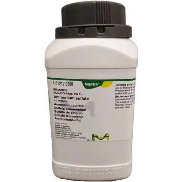 در صنایع غذایی، سولفات آمونیوم بهعنوان افزودنی مجاز برای تنظیم غلظت و بهبود بافت به کار میرود. در کشاورزی، این ترکیب یکی از کودهای رایج برای تأمین نیتروژن گیاه است. در بیوشیمی، بهطور گسترده برای رسوبدهی و نمکزدایی پروتئینها مورد استفاده قرار میگیرد. محصول اصلی مرک به دلیل خلوص بالا و کیفیت ثابت، گزینهای ایدهآل برای مصارف حساس و آزمایشگاهی میباشد.