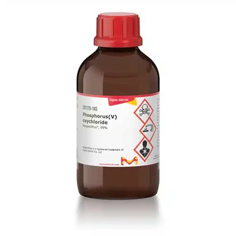 فسفر(V) اکسی کلرید با فرمول شیمیایی POCl₃ و شماره کاتالوگ 201170 یکی از ترکیبات مهم شیمیایی آزمایشگاهی و صنعتی است که توسط برند معتبر سیگما آلدریچ (Sigma-Aldrich) عرضه میشود. این ماده بهصورت مایع بیرنگ با بوی تند و تحریککننده موجود بوده و به دلیل واکنشپذیری بالا با آب و نقش کلیدی در سنتز مواد آلی، جایگاه ویژهای در تحقیقات و صنایع شیمیایی دارد.
