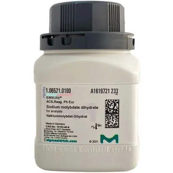 مولیبدات سدیم ۲ آبه (Sodium Molybdate Dihydrate) یک نمک معدنی با فرمول Na₂MoO₄·2H₂O است که به صورت پودر یا کریستال سفید عرضه میشود. این ترکیب یکی از منابع مهم یون مولیبدات (MoO₄²⁻) بوده و در سنتز ترکیبات مولیبدن، آنالیزهای شیمیایی و صنایع مختلف مورد استفاده قرار میگیرد.