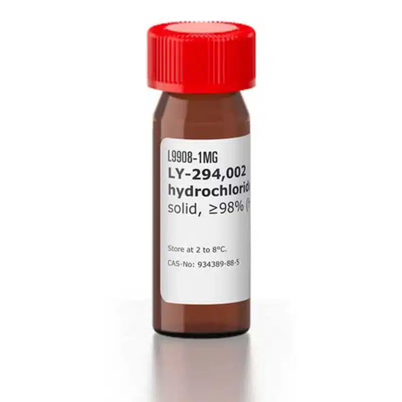 هیدروکلراید (LY-294,002 hydrochloride) کد L9908 اصلی سیگما یک ترکیب شیمیایی با کارایی بالا در مهار آنزیم PI3 کیناز (phosphatidylinositol 3-kinase) کلاس I است. این ترکیب به طور گسترده در تحقیقات علوم زیستی بهویژه در زمینههای سیگنالدهی سلولی، سرطانشناسی و زیستشناسی سلولی مورد استفاده قرار میگیرد.