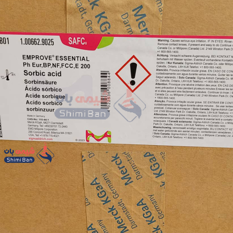 سوربیک اسید (Sorbic Acid) با کد 100662 محصول شرکت مرک آلمان، ترکیبی آلی با فرمول شیمیایی C₆H₈O₂ و جرم مولکولی 112.13 g/mol است. این ماده به صورت پودر بلوری سفید یا کرم کمرنگ ارائه میشود و یکی از پرکاربردترین نگهدارندههای شیمیایی در صنایع مختلف به شمار میرود.